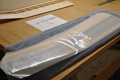 Warning! This is not a recommended procedure! The way to use covering is to cover in straight sections. In this case that would mean covering the mid panel and then with a separate sheet, covering the tip panel.