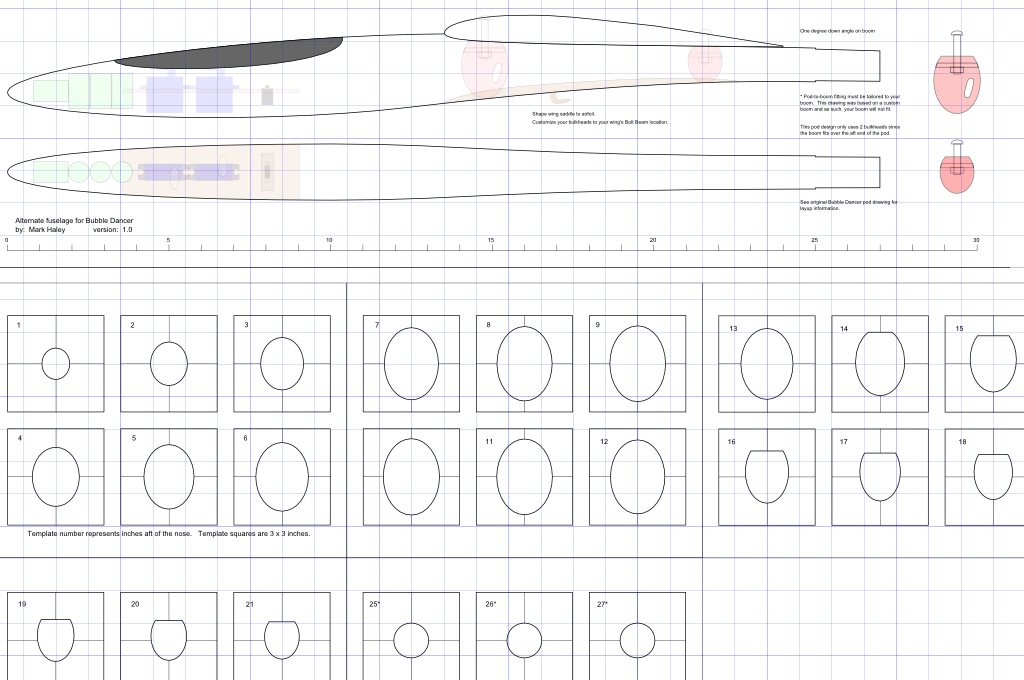 Several people have asked for my custom fuselage pod drawings. I've included the pod outline and shaping templates inside a zip folder for anyone interested in making your own molds from them.