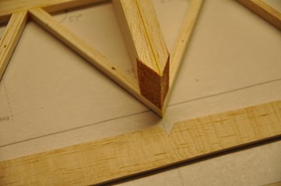 I marked off the needed angle, placed the balsa at that agile, and then sanded using the edge of the table - much quicker and dead accurate!