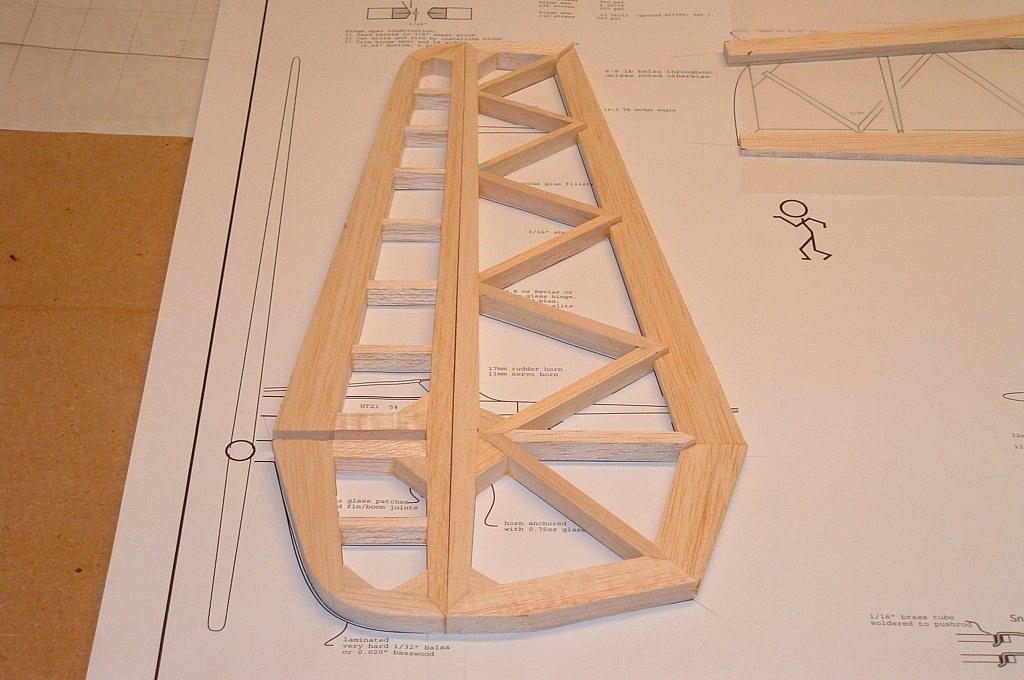 I placed a shim made of the trailing edge stock under the rudder to elevate it enough to lay the trailing edge under the diagonals and then marked the notch locations with a pencil.