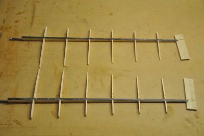 Note: you'll notice that the triangle stock is thicker than the plans call for. None of my local hobby stores carried the right size - and I didn't feel like making my own...